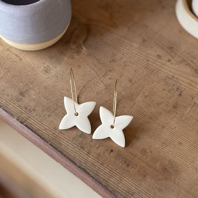 Légères et délicates, ces boucles d'oreilles sont façonnées à la main en porcelaine, puis émaillées et cuites à haute température (env. 1250 °C).
