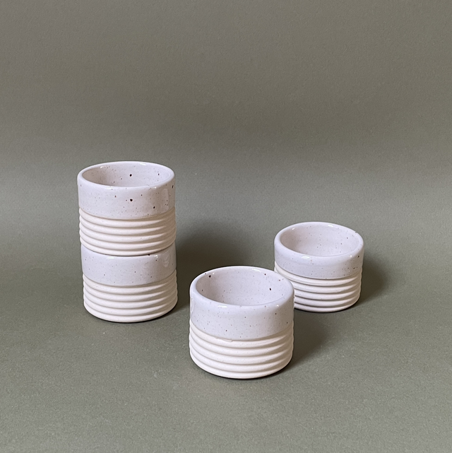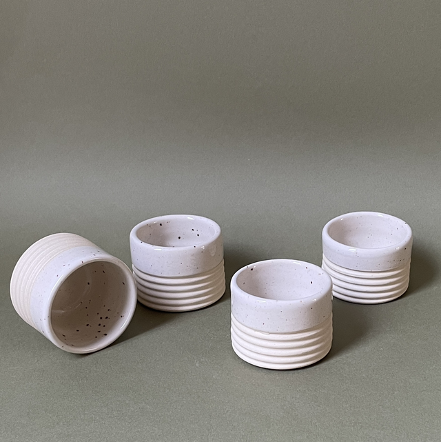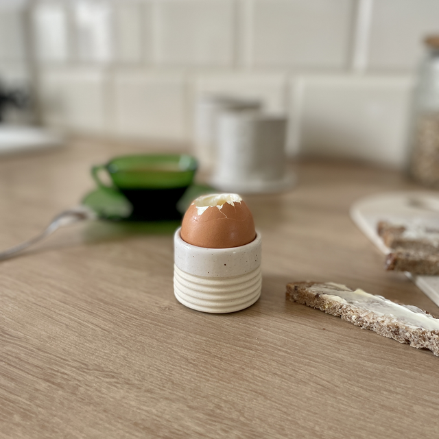 Coquetier façonné à la main, en grès chamotté, puis émaillé et cuit à haute température (env. 1250 °C).