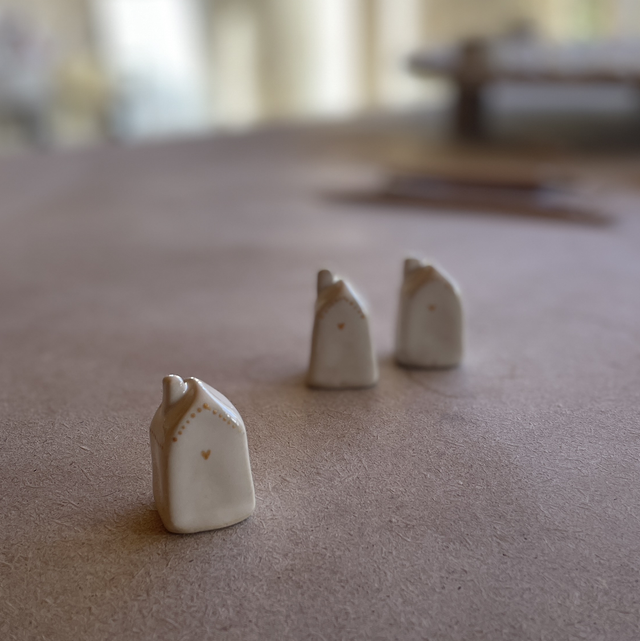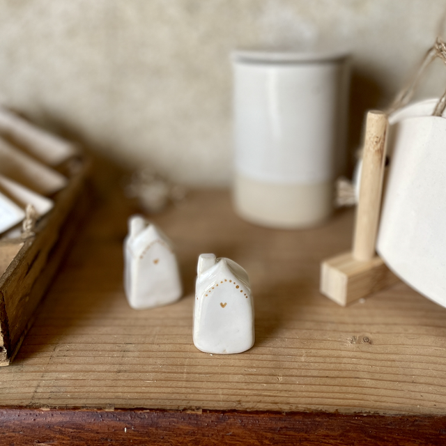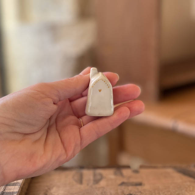 Petit objet porte-bonheur façonné à la main, ce grigri maison est modelé en grès beige, puis recouvert d’un émail blanc.