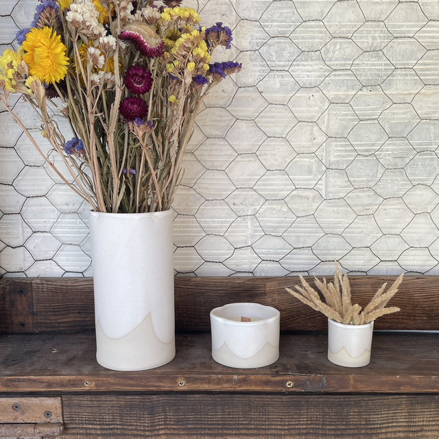⁕ Matériaux : Grès beige clair, émail blanc mat